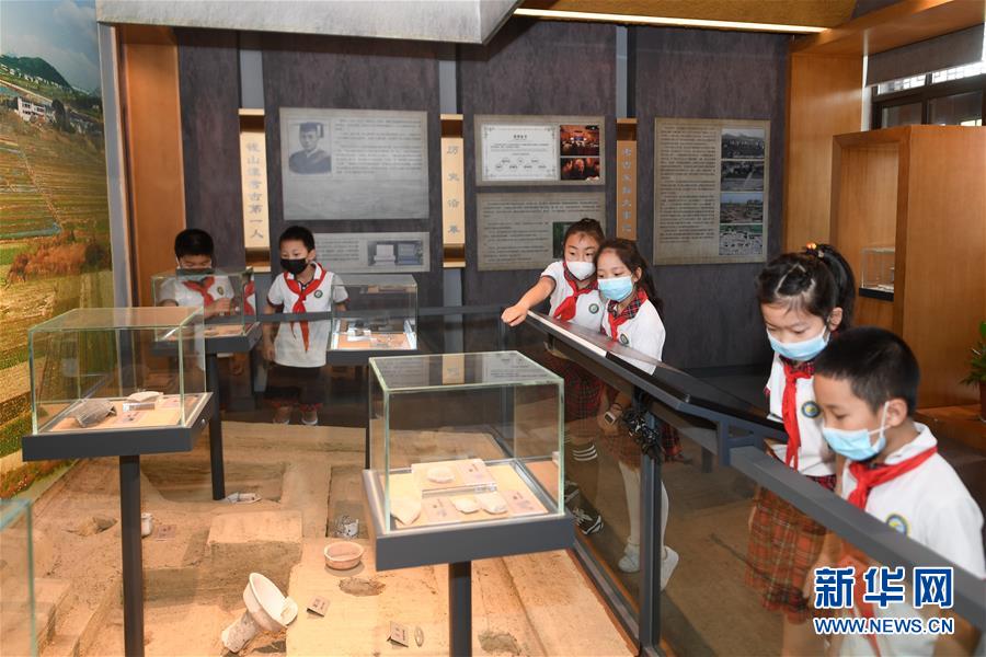 5月13日,小学生在潞村钱山漾文化展示厅参观。