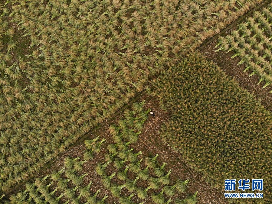 5月13日,在贵州省黔西县洪水镇解放村,村民在采收油菜籽(无人机照片)。新华社记者杨楹摄
