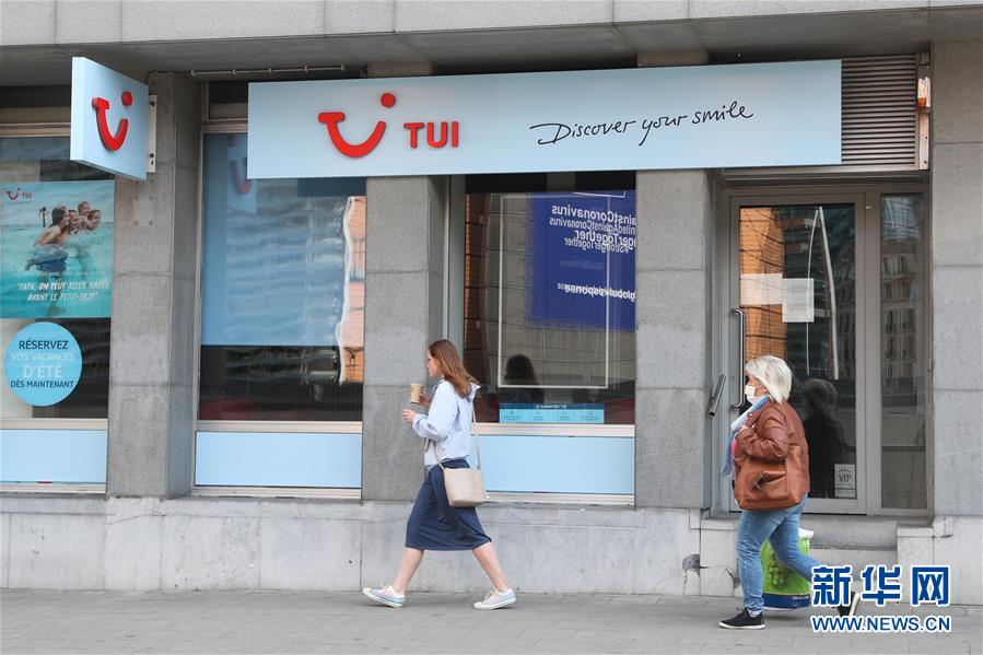 5月13日,行人经过比利时布鲁塞尔的一家途易集团的门店。受新冠疫情冲击,旅游公司面临财务压力。欧洲最大旅游公司途易集团13日宣布准备裁员8000人以控制运营成本。途易集团总部位于德国,拥有旅行社、酒店、航空、邮轮等服务。新华社记者郑焕松摄