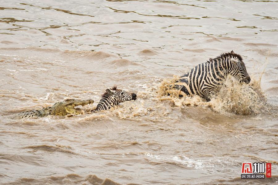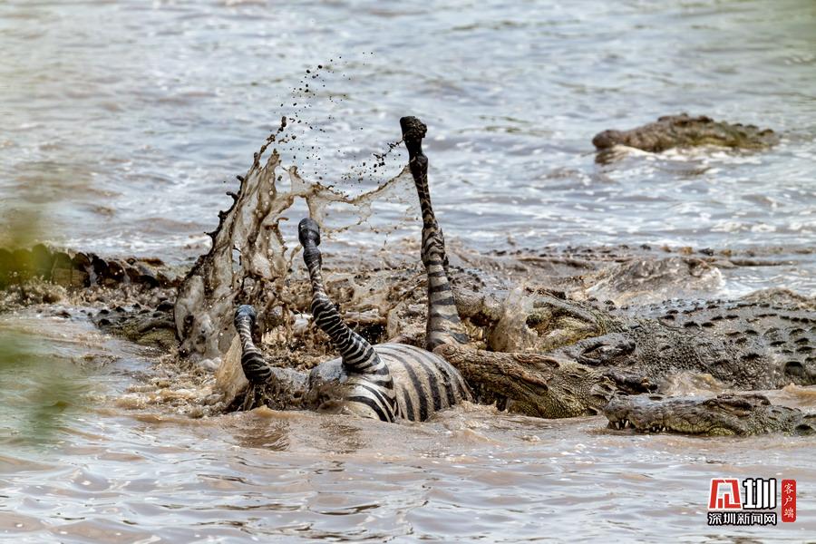 2020年5月20日报道(具体拍摄时间不详),印度摄影师Nimit Virdi在肯尼亚赛马拉国家保护区中亲眼目睹到鳄鱼猎食的震撼画面。