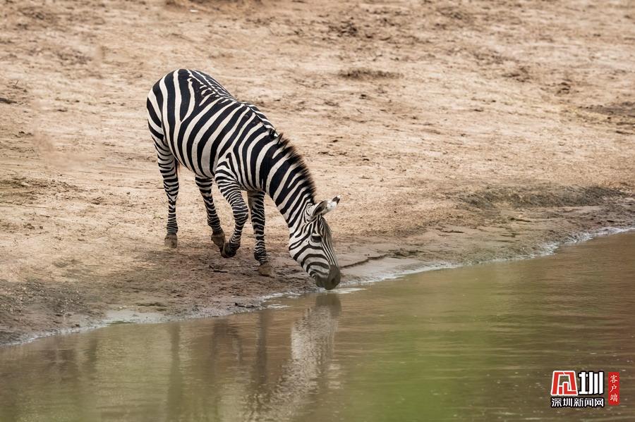 当时有超过1000只斑马,正在河岸上等候合适的机会过河,它们快速低头喝水后又迅速返回河岸。