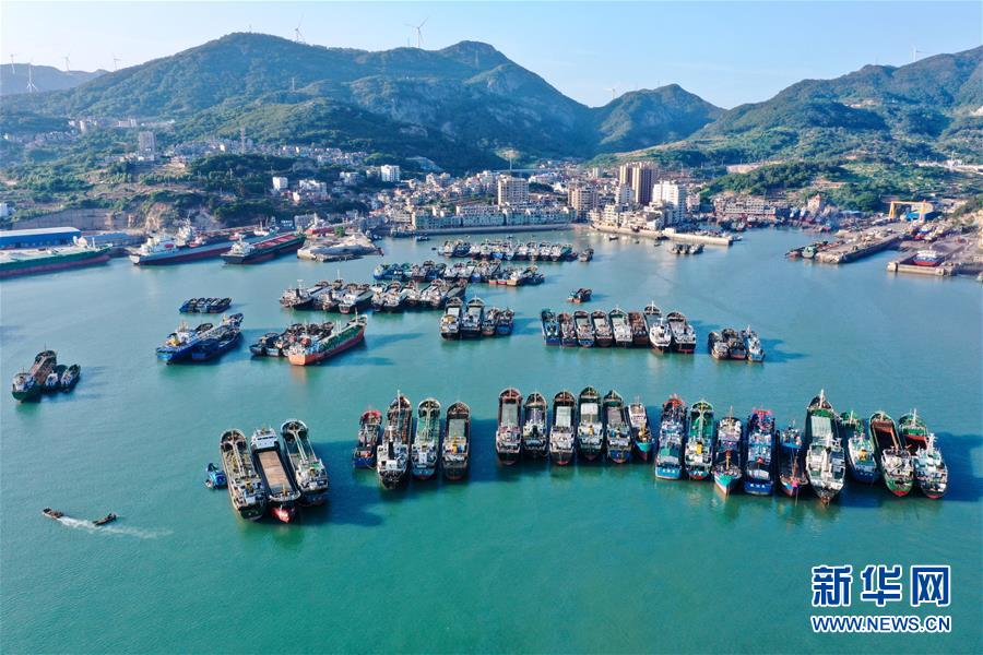 5月13日,休渔渔船停泊在福建省连江县苔菉镇北茭村海湾内(无人机照片)。目前,福建海域已进入伏季休渔期。连日来,福建海洋与渔业部门加强伏季休渔制度的宣传和巡查执法,保障伏季休渔各项措施的顺利实施。新华社记者姜克红摄