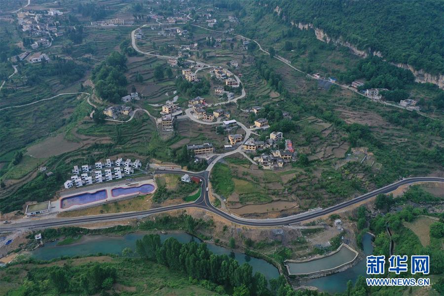 5月14日拍摄的生产龙塘古酒的贵州省毕节市百里杜鹃管理区黄泥乡龙塘村(无人机照片)。贵州省毕节市百里杜鹃管理区黄泥乡龙塘村的龙塘古酒,因独特的古法酿酒技术,口感独特而远近闻名。全村有酿酒户142户,年产量达45万多公斤,龙塘古酒远销重庆、广东、浙江等地,龙塘古酒已成为龙塘人增收的重要来源。新华社记者杨楹摄