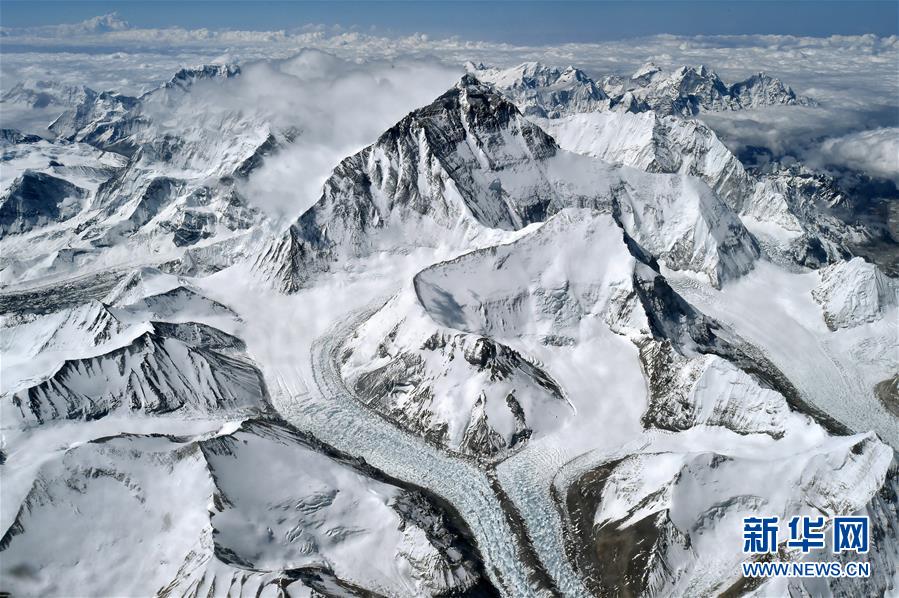 这是5月14日拍摄的珠穆朗玛峰。珠穆朗玛峰是世界上最高的山峰。这里是冰雪的世界,风景十分壮观。新华社记者觉果摄