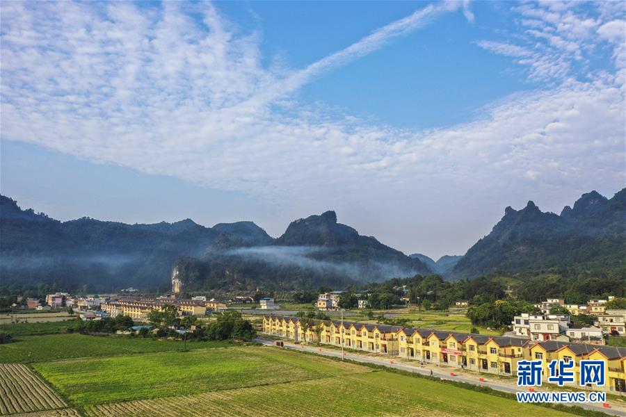 这是广西南丹县“千家瑶寨·万户瑶乡”八圩瑶寨易地扶贫搬迁安置点(4月29日摄,无人机照片)。新华社记者周华摄