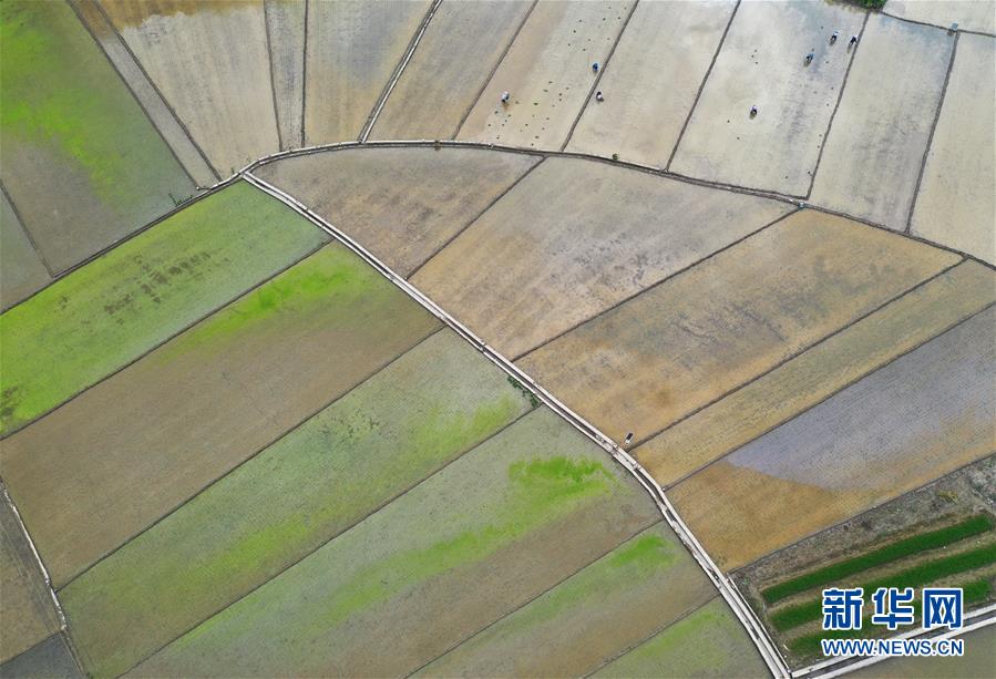 这是广西南丹县田园风光(4月30日摄,无人机照片)。新华社记者周华摄