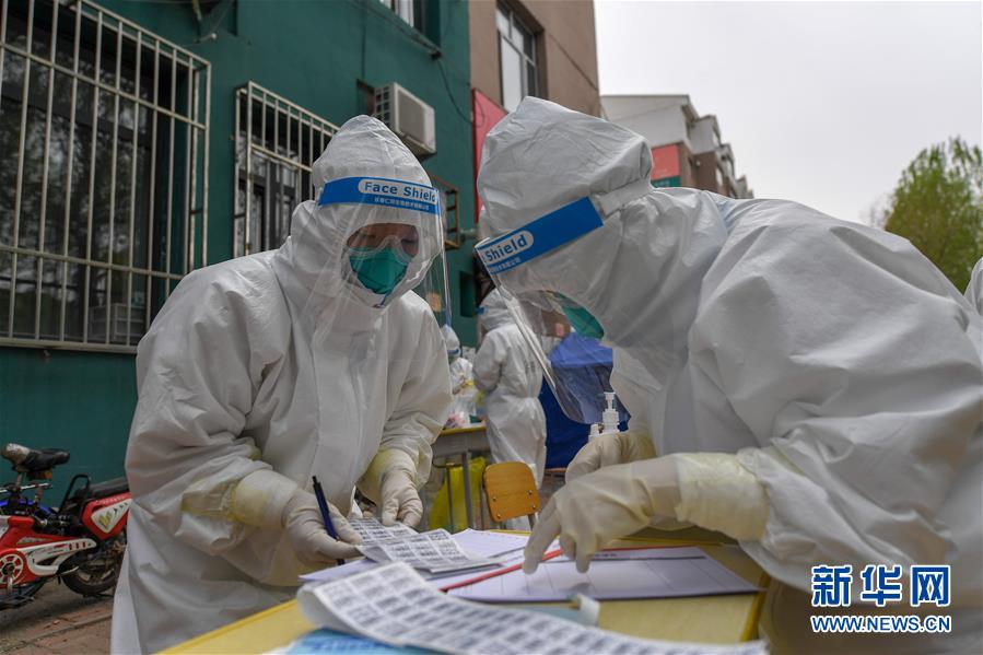 5月15日,在舒兰市建馨园小区,工作人员进行采样准备工作。当日,从吉林市7家市直医院抽调的300名护士经培训后,全部投入到舒兰市(隶属于吉林市)核酸采样工作中。为提供追溯传染源所必需的核酸检测相关数据,舒兰市根据确诊病例的活动轨迹,将流调和核酸检测范围扩大至本地确诊病例和无症状感染者的次密接人员及一般接触者。新华社记者张楠摄