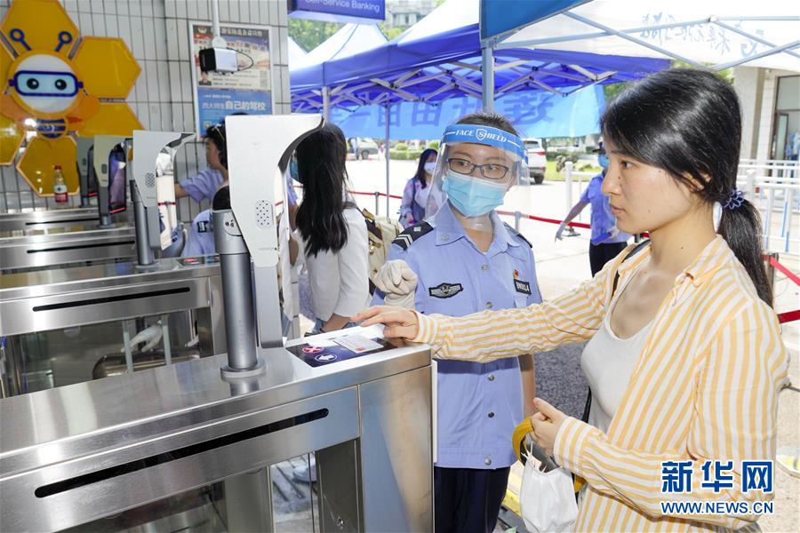 5月15日,在西南大学的返校学生专用通道前,学生按照工作人员和志愿者的引导有序进入校区。当日,重庆西南大学迎来疫情以来首批返校大学生。据介绍,按照疫情防控的需要,重庆市高校2020年春季学期从5月11日起按照“一校一策”原则,实行错峰错时分批次有序开学复课。新华社记者刘潺摄