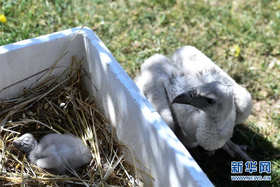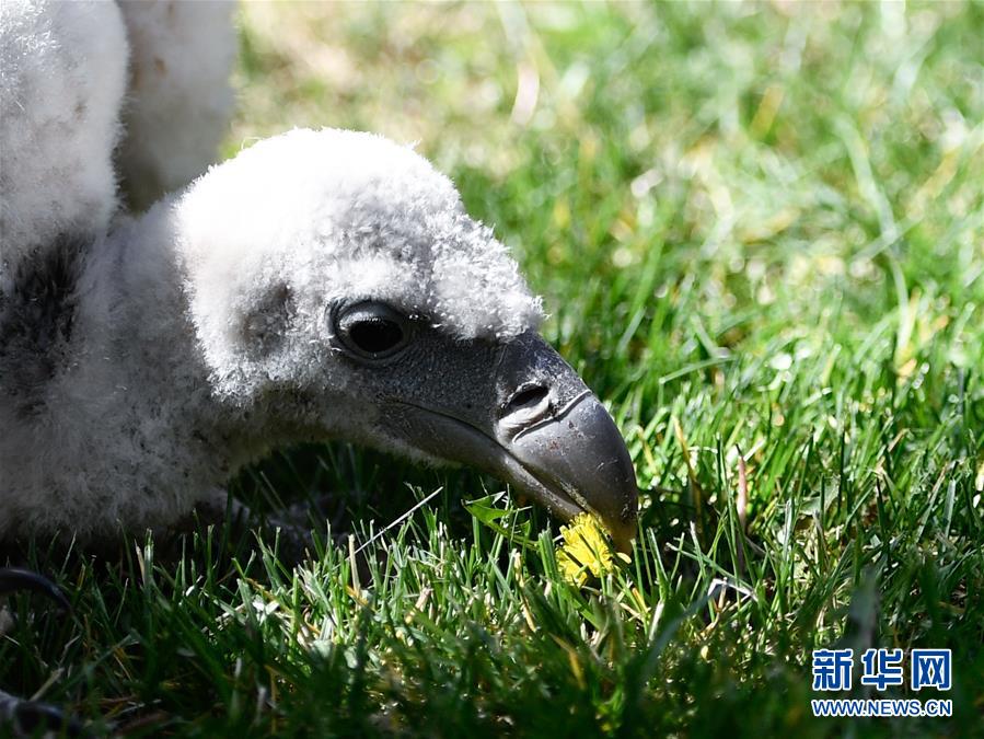 这是5月17日在西宁野生动物园拍摄的人工繁育的高山兀鹫。当日,两只人工繁育的高山兀鹫亮相西宁野生动物园。两只雏鸟为国内现存第三只、第四只人工繁育高山兀鹫。目前两只雏鸟各项身体指标稳定,身体健康。新华社记者张龙摄