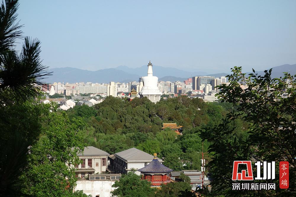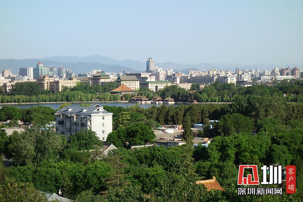 2020年5月18日,北京,天气晴好碧空万里,游客在景山公园登高远望,北京城壮美景观尽收眼底。