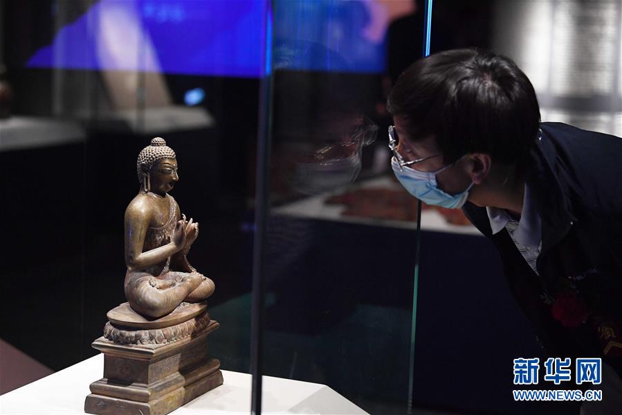 5月18日,观众在和田博物馆参观。当日是国际博物馆日,新疆和田博物馆优化升级后开馆迎客。馆内展示的众多珍贵文物,重现了“丝路记忆”的精美和丰厚。新开馆的和田博物馆由北京市援建,总建设面积13493平方米,馆区分为和田历史文化展厅、文创体验厅等多个展厅。新华社记者沙达提摄