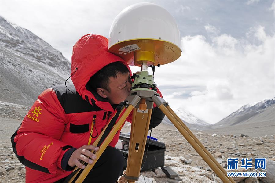 国测一大队队员在珠峰大本营附近测试设备(4月27日摄)。新华社记者普布扎西摄