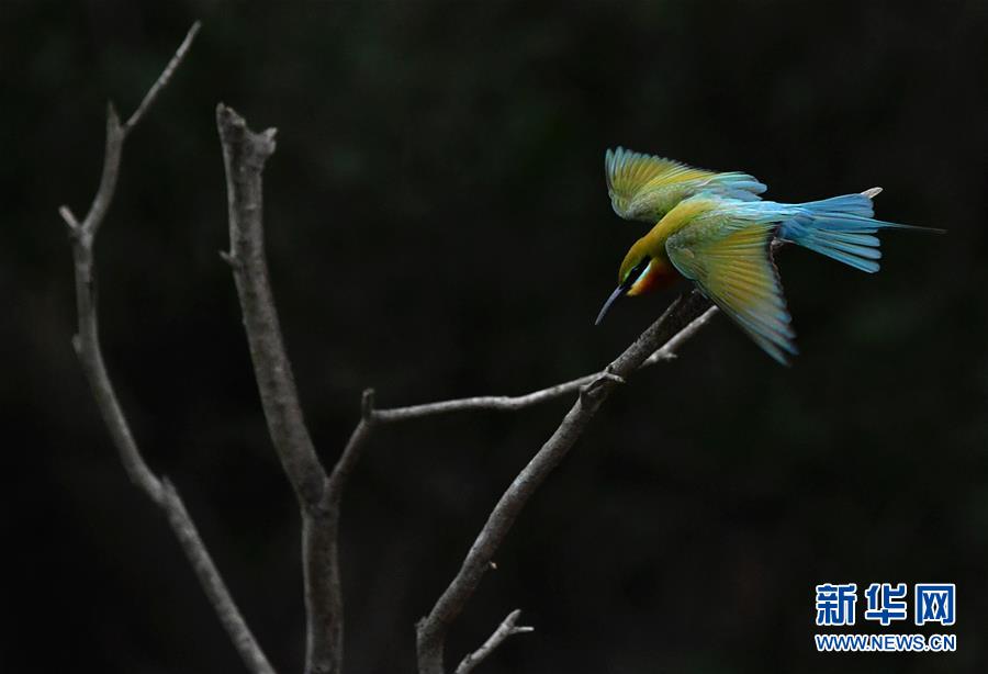 这是5月19日在厦门五缘湾栗喉蜂虎自然保护区拍摄的栗喉蜂虎。近日,大批栗喉蜂虎来到厦门五缘湾栗喉蜂虎自然保护区栖息、繁殖。新华社记者魏培全摄