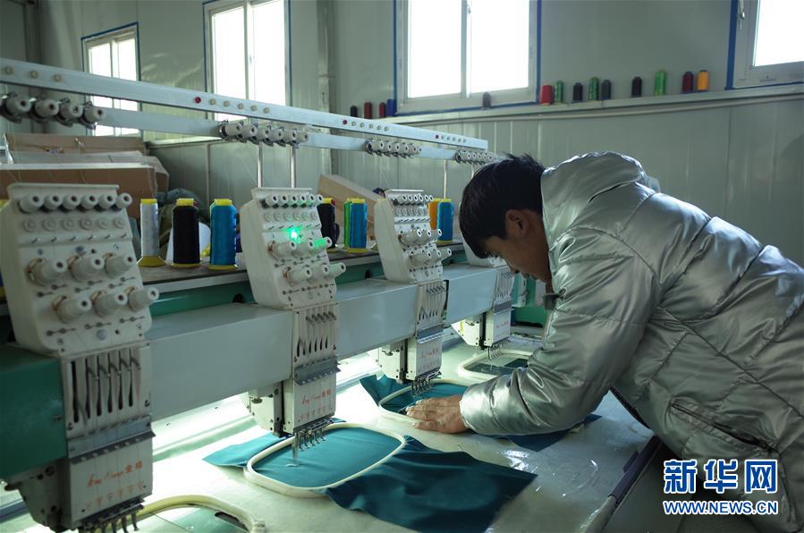 在西藏拉萨市达孜区,缝纫工人加央旦增在服装车间操作缝纫机(5月15日摄)。新华社记者格桑边觉摄