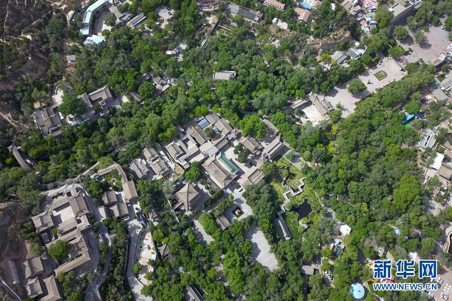 这是5月18日在兰州市城关区拍摄的皋兰山下五泉山公园初夏景象(无人机照片)。