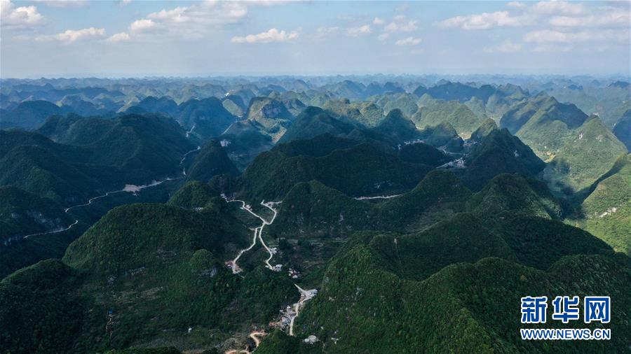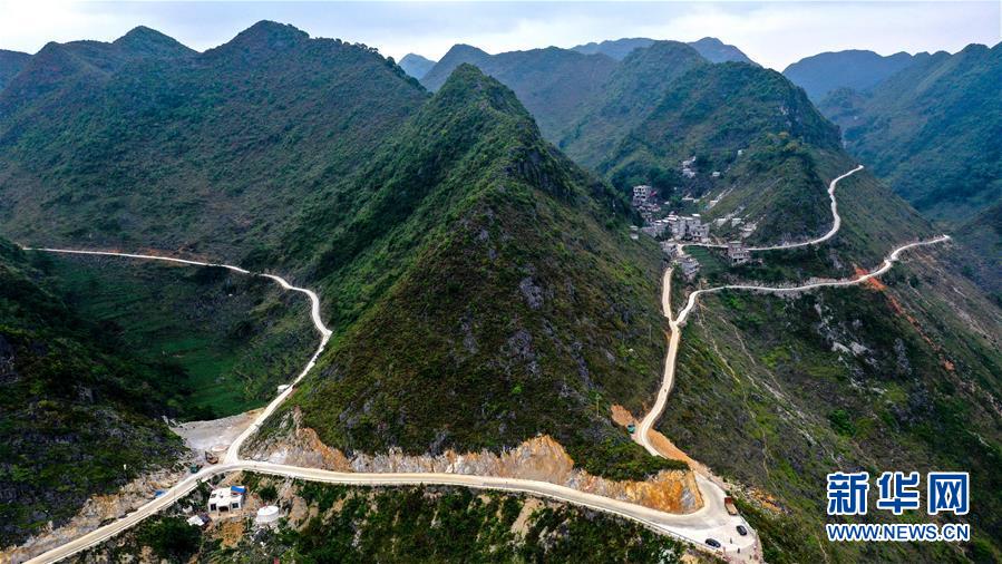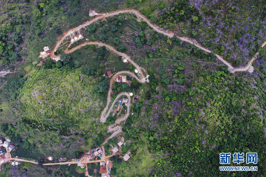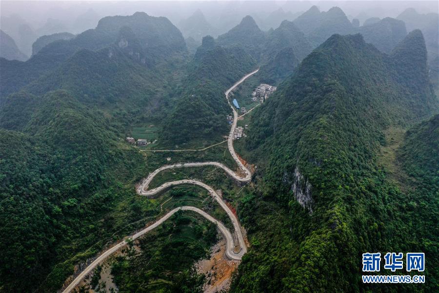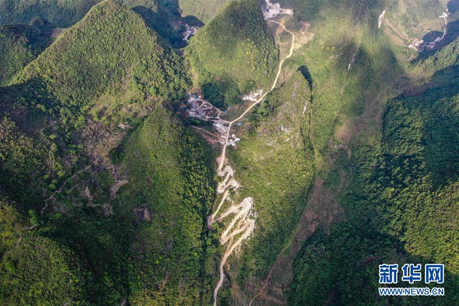 这是去年底通车的大化瑶族自治县七百弄乡江栋村那徐屯至弄奖屯公路(5月14日摄,无人机照片)。新华社记者曹祎铭摄