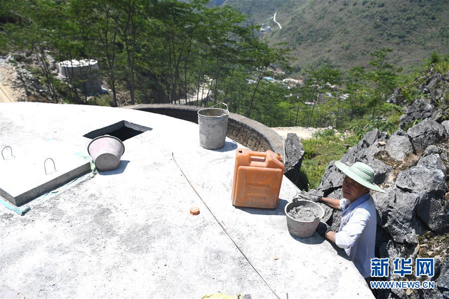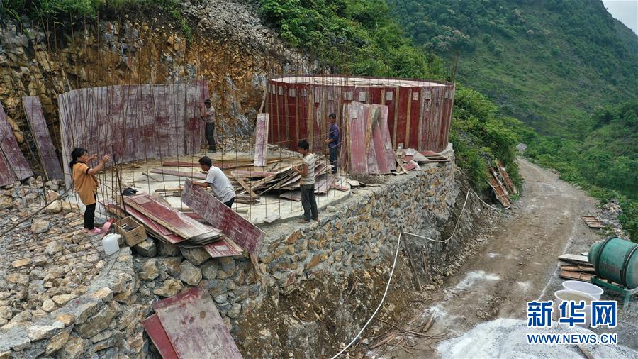 大化瑶族自治县雅龙乡胜利村群众在建设水柜(2019年6月6日摄)。新华社记者张爱林摄