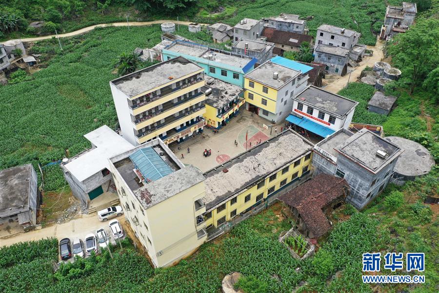 这是面貌焕然一新的广西大化瑶族自治县板升乡弄勇小学(2019年5月10日摄,无人机照片)。新华社记者黄孝邦摄