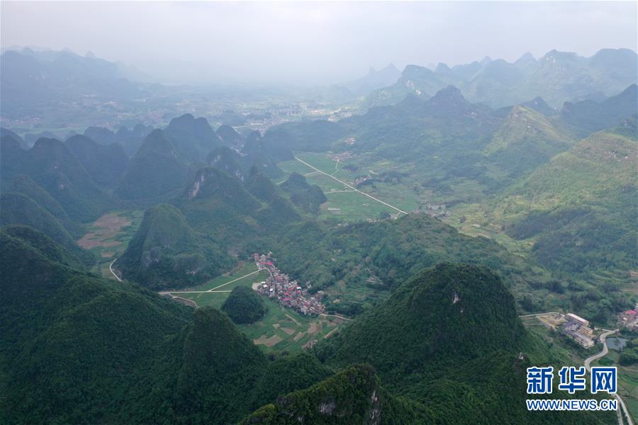 这是广西环江毛南族自治县下南乡的农村道路和民居(5月13日摄,无人机照片)。毛南族是我国28个人口较少民族之一,广西壮族自治区环江县是国家扶贫开发工作重点县,也是全国唯一的毛南族自治县,全县有毛南族6.45万人,占全国毛南族总人口的约70%。2019年底,环江县贫困发生率降至1.48%。2020年5月,环江县退出贫困县序列。综合全国毛南族脱贫情况,毛南族已实现整族脱贫。新华社记者陆波岸摄