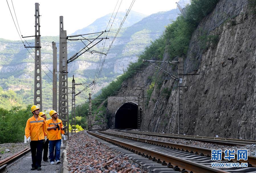 5月21日,捅山工在进行线路巡查。新华社记者郝源摄