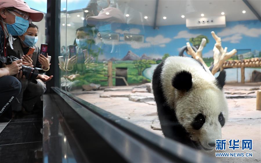 5月21日,工作人员将大熊猫“阿灵”送入大熊猫馆饲养舍。当日,两只分别来自中国大熊猫保护研究中心雅安碧峰峡基地和都江堰青城山基地的大熊猫“阿灵”和“青城”,入住辽宁省鞍山市二一九动物园大熊猫馆。经过一段时间的适应期,它们将正式与市民和游客见面。新华社记者姚剑锋摄