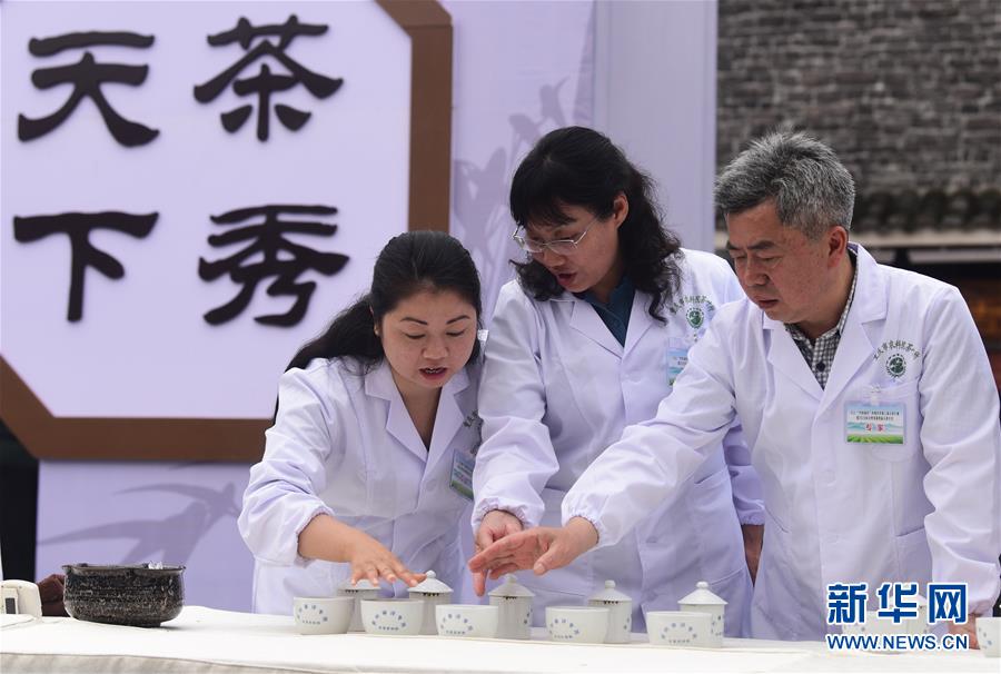 5月22日,专家在斗茶大会上评审参赛茶叶。当日,2020永川秀芽第四届斗茶大会在重庆市永川区举行,22家从事茶叶生产加工的企业参加大会。近年来,永川区把茶叶产业确立为农业特色产业大力扶持,2019年全区茶叶种植面积近10万亩。新华社记者 王全超 摄