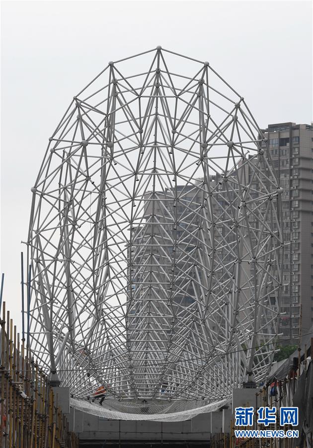 5月23日,工人在海口文明东越江通道项目江西段主线出入口施工。新华社记者杨冠宇摄