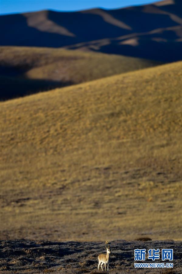 这是2019年11月9日在青海省果洛藏族自治州玛沁县境内的草原上拍摄的藏原羚。新华社记者张龙摄