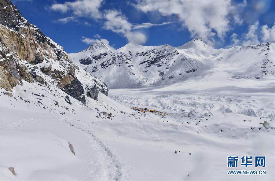 被大雪覆盖的海拔6500米的珠峰前进营地(5月22日摄)。新华社记者晋美多吉摄