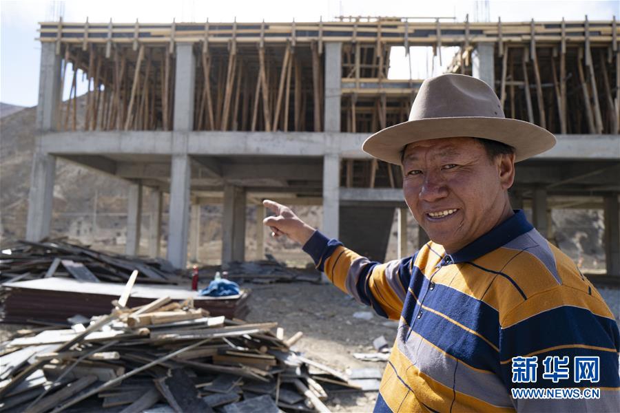 “牛头旅馆”老板多吉在新盖的旅馆前监工(5月17日摄)。新华社记者普布扎西摄
