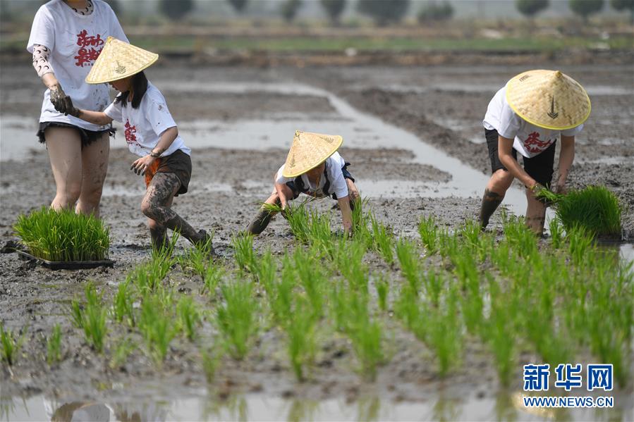 5月24日,小朋友与家长在稻田里参加亲子插秧比赛。当日,十余名小朋友在家长的带领下来到浙江省湖州市吴兴区八里店镇尹家圩粮油植保农机专业合作社的稻田中,参加亲子插秧、稻田捉鱼等农事体验活动。新华社记者黄宗治摄
