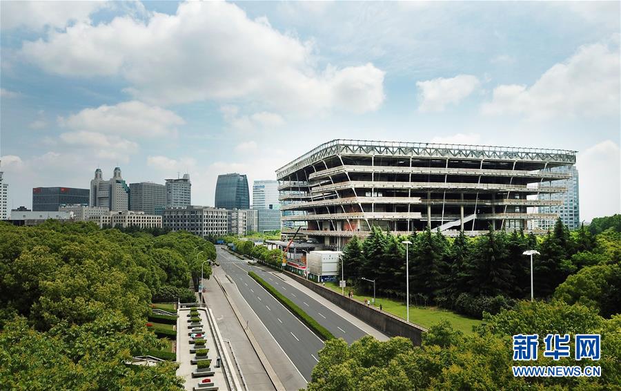 5月22日拍摄的建设中的上海图书馆东馆(无人机照片)。 新华社记者 方喆 摄