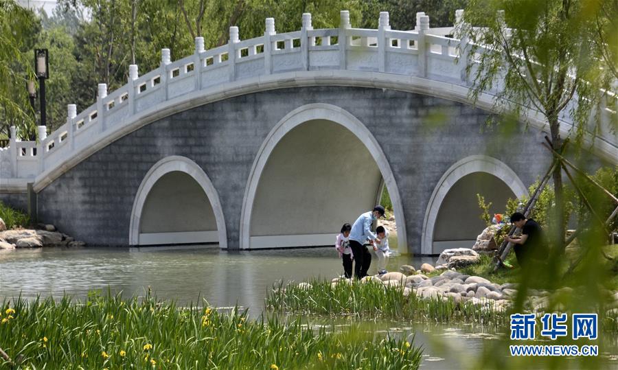 5月24日,北京大兴区旧宫镇居民在刚刚建成开放的森林公园内游玩。这个公园占地面积500多亩,种植了70多种乔木和灌木,并设置湿地景观区、田园风光区、林间徒步区等景观区域。近年来,北京市大兴区旧宫镇大力发展城市森林和绿地建设,先后建设了十余个大小不同的公园和绿地林地区域,总面积近4000亩,让城市居民“听得到河畔蛙声、闻得见草味花香、看得到绿地森林”,居住环境大为改善。新华社记者李欣摄
