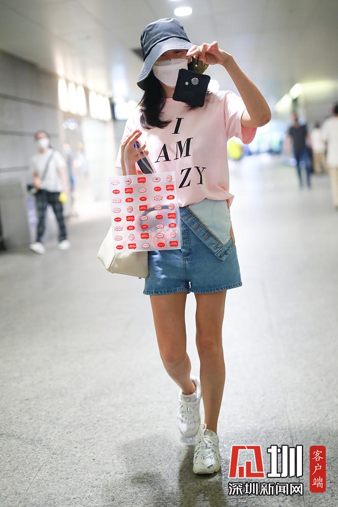 2020年5月25日,上海,张雨绮现身机场。她穿粉嫩T恤少女感十足,搭配牛仔短裤大秀美腿,拎包走机场笑眼弯弯女神范。