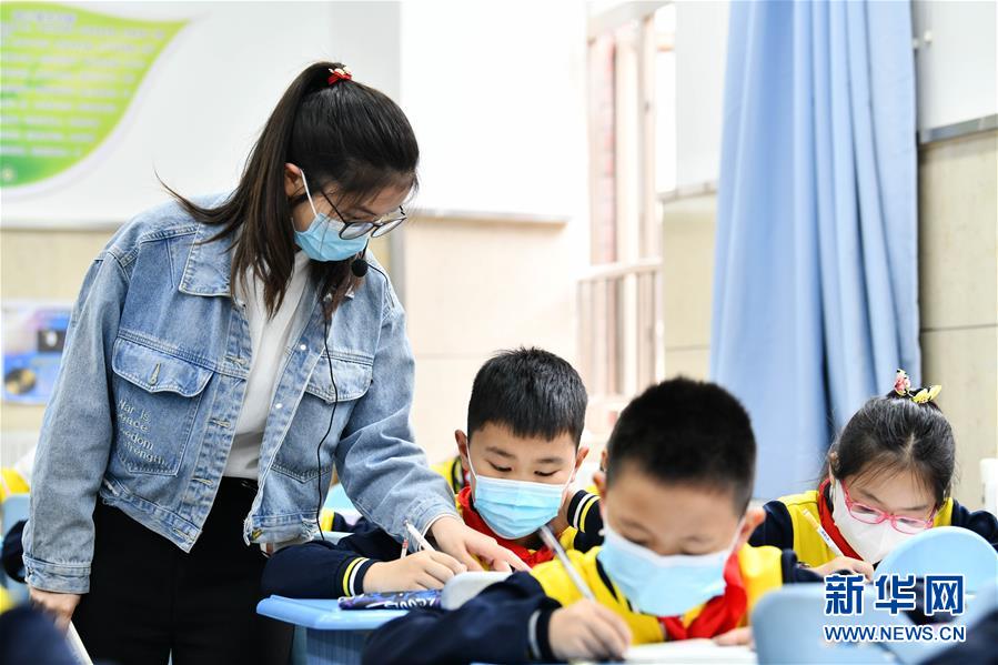 5月25日,贵阳市南明区苗苗实验学校的老师在辅导学生做课堂练习。新华社记者杨文斌摄