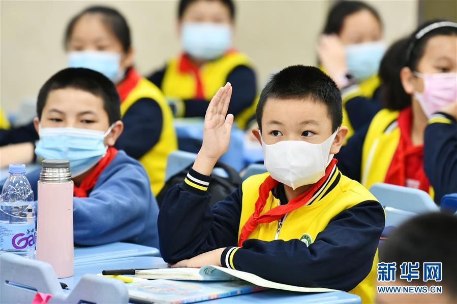 5月25日,贵阳市南明区苗苗实验学校的学生在课堂上举手回答问题。新华社记者杨文斌摄