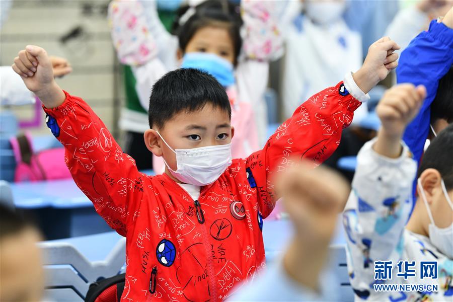 5月25日,贵阳市南明区苗苗实验学校的学生在做室内课间操。新华社记者杨文斌摄
