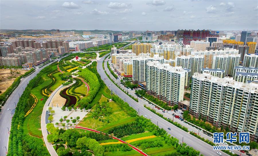 5月25日拍摄的榆林市高新区绿化走廊(无人机照片)。新华社记者陶明摄