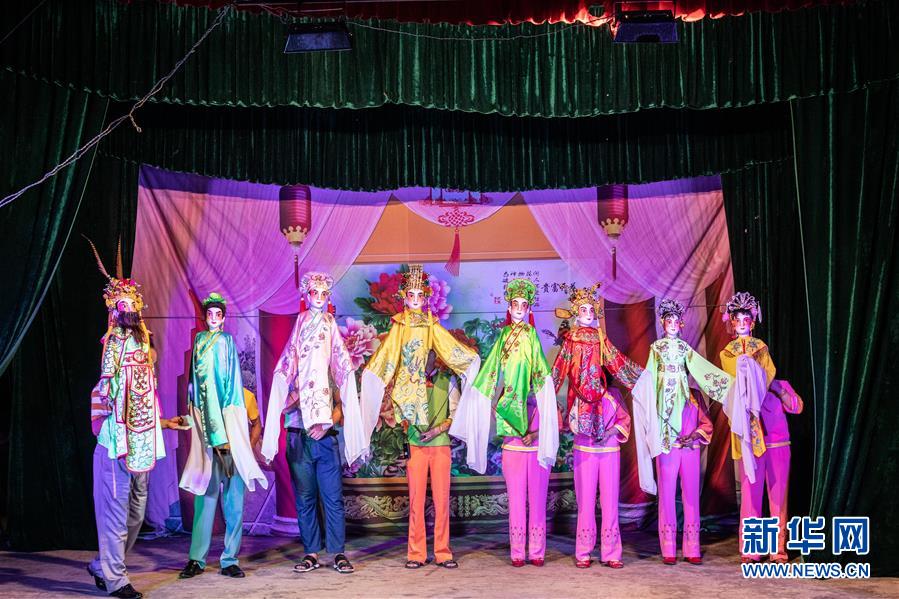 5月24日,海南临高新风人偶戏团的人偶在舞台亮相。新华社记者张丽芸摄