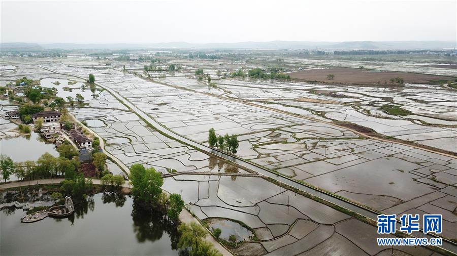 这是5月22日拍摄的宁安市渤海镇插完秧的稻田(无人机照片)。新华社记者王建威摄