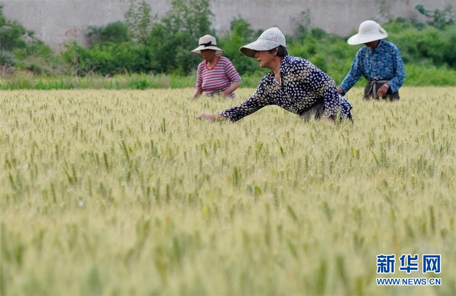 5月26日,农民在内丘县东庞前街村麦田清理杂麦。夏日时节,河北省邢台市内丘县农民抢抓农时开展麦田后期管理,为小麦增产丰收打好基础。新华社记者朱旭东摄
