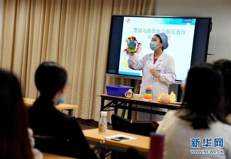 5月26日,中国福利会国际和平妇幼保健院健康教育科孕妇学校的医生在上课。新华社记者 刘颖 摄