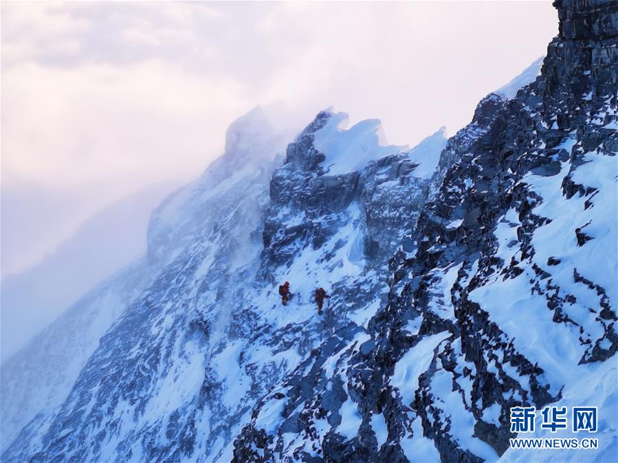 5月27日,2020珠峰高程测量登山队正在向珠峰峰顶挺进。新华社特约记者扎西次仁摄