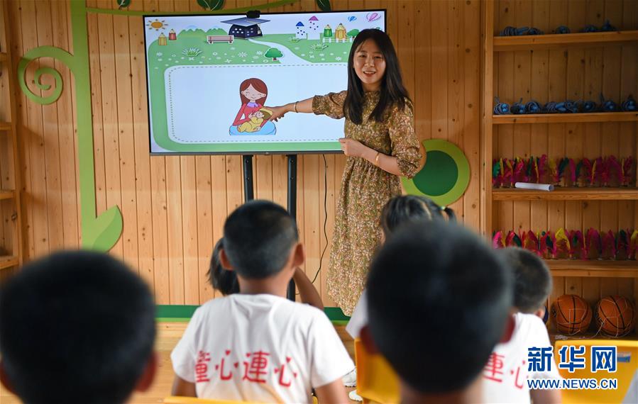 5月27日,在江西省贵溪市金屯镇金屯村渡坊村小组,志愿者给留守儿童上礼仪课。