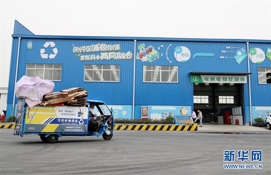 5月27日,一辆可回收物清运车驶入浦锦街道两网融合中转服务站。