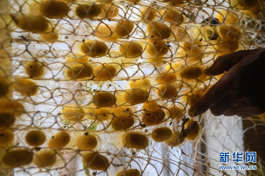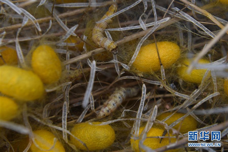 养殖的黄金蚕在吐丝结茧(5月27日摄)。新华社记者徐昱摄