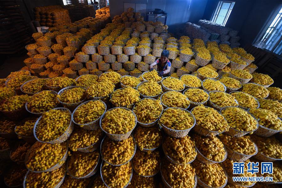 5月27日,桐乡市凤鸣街道建胜村70岁的村民宋柏明在收获“黄金茧”。他今年在桐乡兴民蚕业专业合作社的指导下首次养3张黄金蚕茧种,收获“黄金茧”近400斤,比往年同期增收1500元。近期,蚕桑之乡浙江省桐乡市的蚕农们迎来了蚕茧丰收的季节,其中新品种“黄金茧”的增收效果尤其明显。据介绍,与普通蚕丝相比,色泽金黄的黄金蚕丝中叶黄素含量高,抗菌效果更好,深受市场青睐。2020年春季,浙江省桐乡市共计发放黄金蚕茧种1225张,产量预计75吨,总产值近300万元,较普通蚕茧增收约20%,成为当地农业增收的亮点。浙江省桐乡市是我国蚕桑的重要产地,“桐乡蚕桑习俗”也被国务院列入第二批国家级非物质文化遗产名录。新华社记者徐昱摄