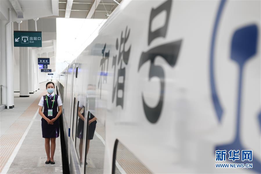 5月27日,试运行检查确认列车乘务人员在商合杭高铁宣城站。新华社记者张端摄