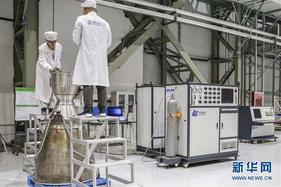 5月26日,工作人员在蓝箭航天(湖州)智能制造基地发动机装配区进行发动机质检工作。新华社记者张玉薇摄