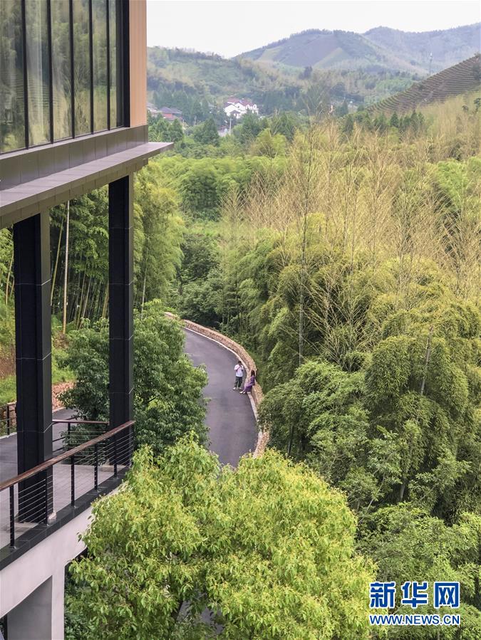 5月26日,游客在湖州慧心谷绿奢度假村休闲。新华社记者张玉薇摄
